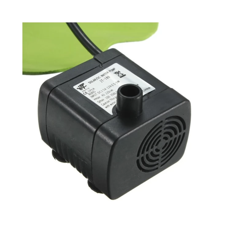 The Solar Lotus Leaf Water Pump Fountain is a floating solar-powered decorative fountain. Natural attractive appearance in the shape and style of green lotus leaf adds a lot of charm of wildness to a garden or pond. It is suitable and absolutely friendly for birdbaths, small ponds, fish tanks, garden decoration etc.