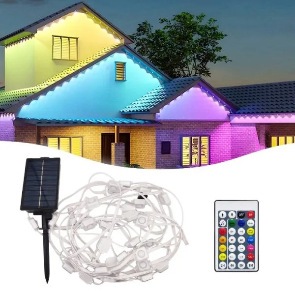 Each system features a high-efficiency monocrystalline solar panel and long-life lithium battery, providing up to 12 hours of reliable night-time illumination. Advanced RGB COB LEDs create dynamic, fantasy-colour effects that blend decorative charm with functional brightness. Available in 15 m (30 LED) and 30 m (60 LED) models, they adapt easily to residential eaves, commercial façades, or long runs along park shelters and pathways.